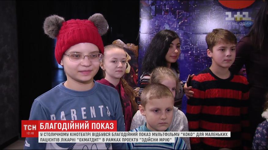 На него пригласили маленьких пациентов больницы "Охматдет". Показ состоялся в рамках проекта 1+1 "Исполни мечту". Перед сеансом детей встречали куратор проекта - ведущая ТСН Лидия Таран, а с ней ведущая "Завтрака. Выходной" Валентина Хамайко. Среди приглашенных была и 15-летняя участница проекта, которая уже осуществила свою мечту, создав собственный мультик.