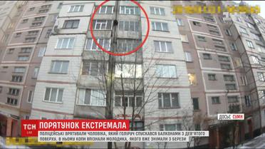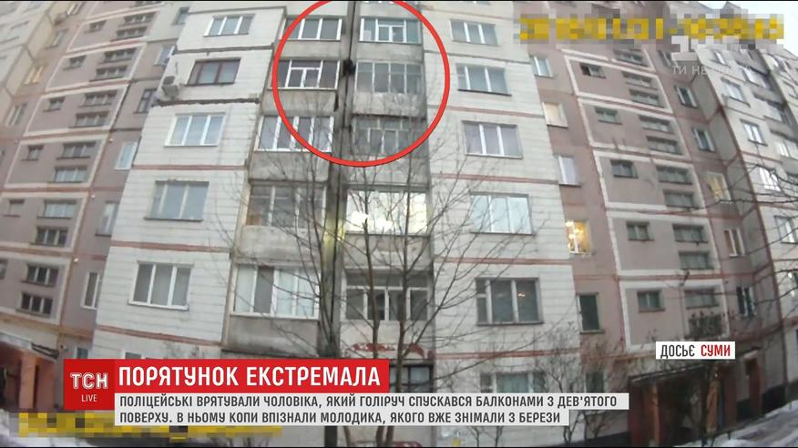 В Сумах копы спасли мужчину, который голыми руками спускался балконами с девятого этажа
