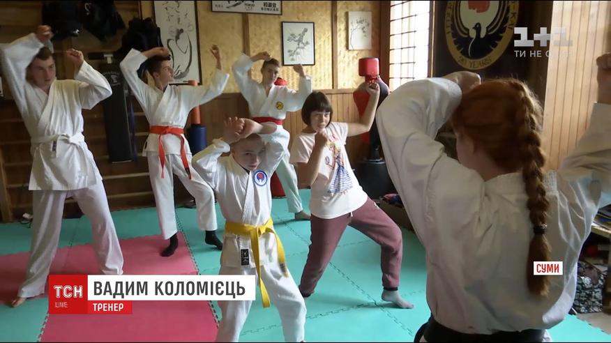 Боевым искусством сейчас овладевают 25 воспитанников. Это дети с ДЦП, синдромом Дауна, аутизмом. Несмотря на диагнозы, среди воспитанников школы каратэ уже есть два чемпиона Европы. Воспитанников тренер Вадим Коломиец набирал просто с улицы: встречал родителей и предлагал хотя бы попробовать.