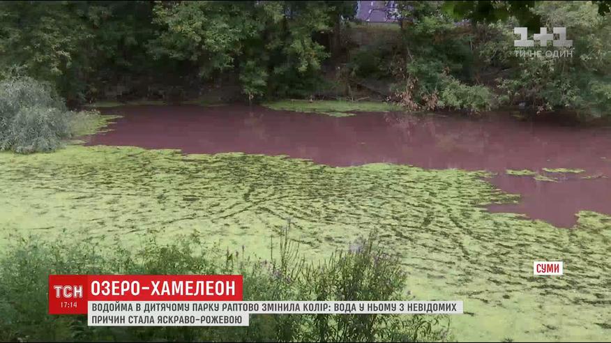 В Сумах озеро внезапно окрасилось в розовый цвет