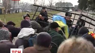 В Сумах в рабочее время на митинг собрались несколько тысяч протестующих. Они выломали двери, сорвали таблички и разбили все, что связано с партийной символикой.