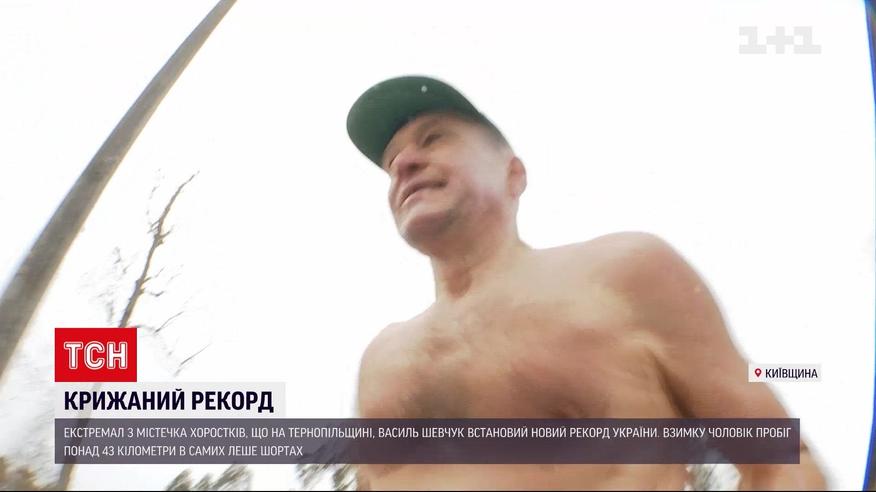 Преодолеть марафонскую дистанцию – 42 километра – зимой и почти голышом. На это решился экстремал из городка Хоростков Тернопольской области. Мужчина – тамошняя звезда, потому что регулярно устраивает ледяные рекорды. Сейчас приехал в Киевскую область, чтобы все зафиксировали официально.