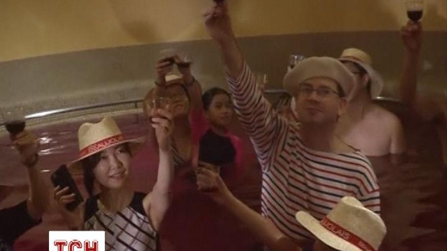 Японцы первые в Евразии попробовали Божоле-нуво. Обычно дегустация молодого французского вина - это праздник, когда для гостей набирают горячую ванну с напитка. На этот раз мероприятие приобрело мрачной ноты. Купальщики почтили погибших в теракте 13 ноября в Париже минутой молчания.
