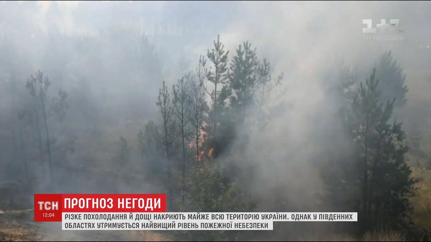 До сих пор спасатели борются с огнем на Житомирщине. Там горит Полесский природный заповедник. Сухость и жара еще задержатся в южных областях. На остальной территории Украины - холод, дожди и грозы. Дожди уже накрыли Запад, теперь будут поливать Север и Центр.