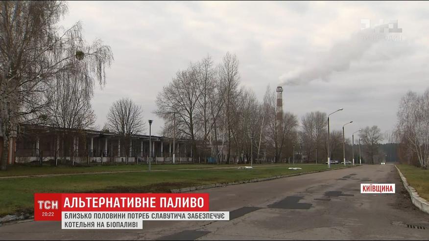 Одна из таких - на деревянных щепках - обеспечивает почти половину потребностей города Славутич Киевской области. Три котла внутри сжигают измельченные деревянные щепки. Их забирают в лесхозах и на пилорамах. Обходится такое топливо в разы дешевле, чем газ. Обычная котельная в городе пока обогревает более половины домов.