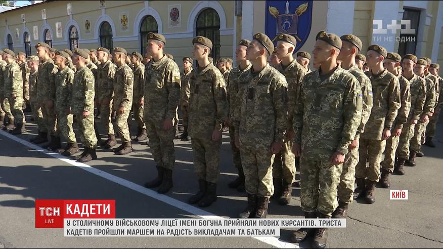 В столичном военном лицее имени Богуна первый звонок начинается шествием по плацу, вручением погон и минутой молчания. Только в этом году - более 300 новичков. Будущие офицеры говорят, война в стране их не пугает. Посвятить себя украинской армии - их личный выбор.