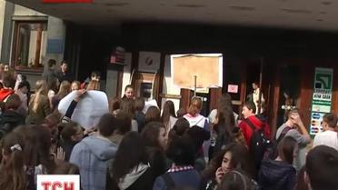 В Ужгороде школьники забросали городской совет яйцами и туалетной бумагой