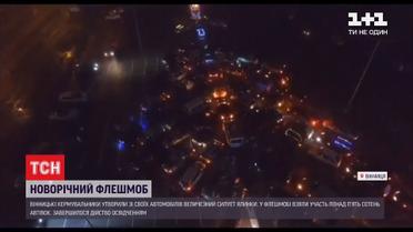 С ревом моторов и историей любви. В Виннице создали огромную автоелку. Новогодний флэшмоб запустили местные активисты. Для формирования елки водителям следовало приехать к указанному месту, возле одного из супермаркетов, припарковаться, где покажут организаторы, и включить фары и клаксоны. Собралось более 5 сотен участников. Ехали не только легковыми авто, но и грузовиками. Некоторые водители свои машины еще и украшали гирляндами. Чтобы увидеть автоелку, все снимали с квадрокоптера. Закончилось действо романтично. Один из водителей сделал предложение своей девушке.