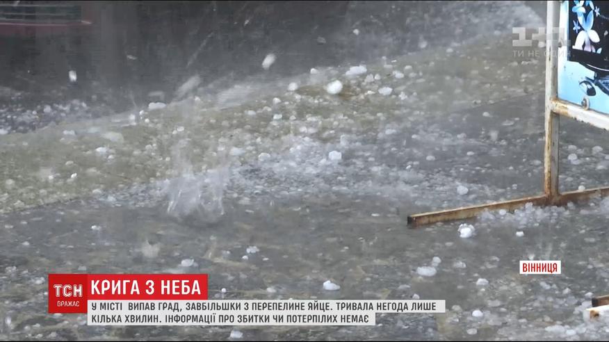 Ливень начался около семи вечера после дневной жары. Ее сопровождала сильная гроза, а потом с неба посыпался лед. Жители делятся в соцсетях фотографиями - льдинки сравнивают с перепелиными яйцами и сливами. Длительная непогода не более двадцати минут.