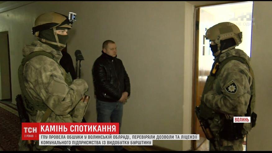 Несколько часов в здании работали правоохранители в масках и следователи ГПУ. Как объяснили, наведались, чтобы получить разрешения и лицензии "Волиньприродресурса". Это первое и пока единственное в Украине коммунальное предприятие, которое в пределах децентрализации получило разрешения на добычу янтаря. В ГПУ говорят, получили информацию, что разрешения могли выдать с нарушениями. Зато в облсовете уверены, что причина совсем в другом.