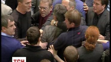 Драка произошла между народным депутатом от Партии регионов Виталием Грушевским и несколькими депутатами от фракции "Свобода".