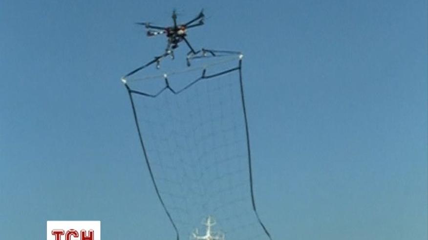 Закон, который ограничивает использование беспилотников, уже вступил в силу. И теперь полиция с помощью дрона с сеткой вылавливать беспилотники, которые залетают в разрешенные места. Квадрокоптер-охотник 3 метра высотой и 2 в ширину.