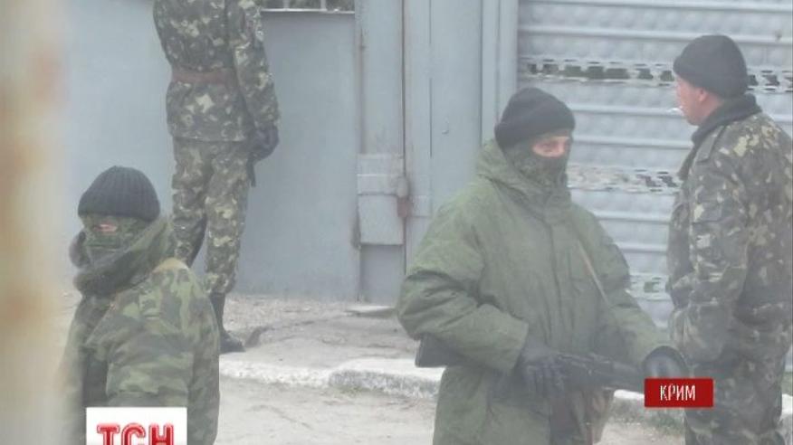 Захватчики вооружены автоматами и снайперскими винтовками - рассказали украинские офицеры. Военные, оставшиеся верными присяге Украине, сейчас заблокированы в помещении штаба.