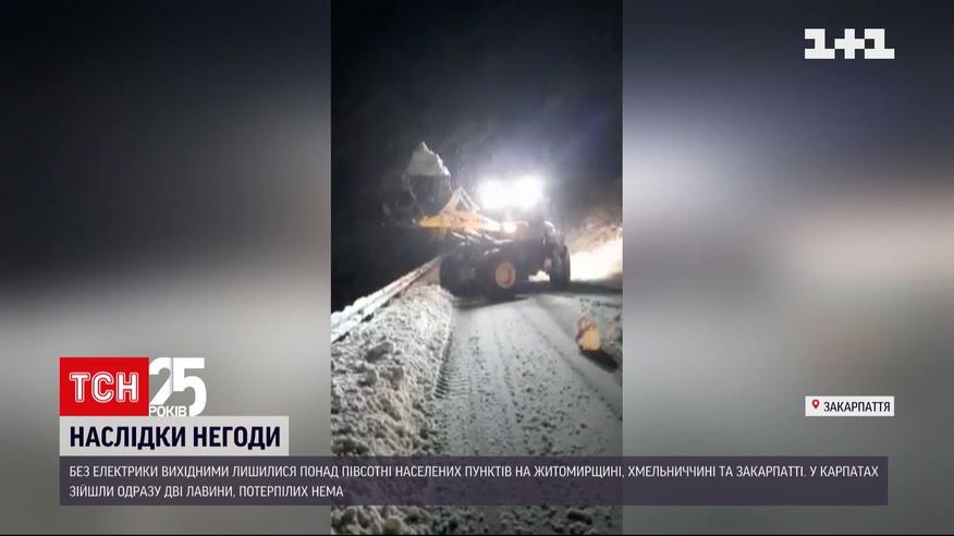 Более трехсот населенных пунктов в настоящее время без электричества - сильный ветер оборвал провода в шести западных областях Украины. На Прикарпатье - в горных районах - в плену оказались несколько автомобилей, в том числе и полицейский. Выбраться из сугробов помогали спасатели. В Ровенской области скользкие пути уже произошло несколько аварий. На трассе "Киев-Чоп" одна фура слетела с дороги. На Закарпатье сошли сразу две горные лавины. На несколько часов они перекрыли движение транспорта по международной трассе, соединяющей Закарпатье со Львовом и Ивано-Франковском.