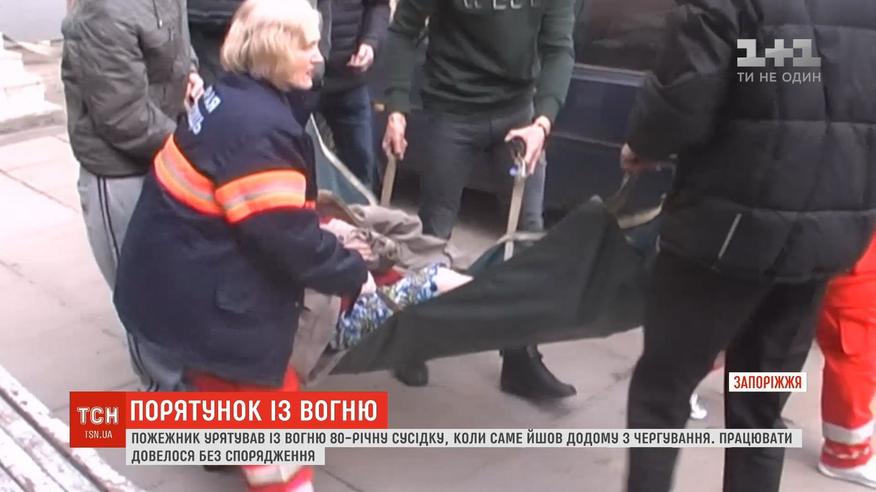В Запорожье пожарный вынес из огня 80-летнюю соседку