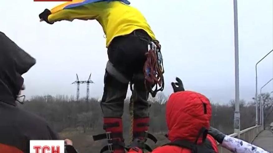 В Запорожье старый год провели прыжками с 42 метрового моста