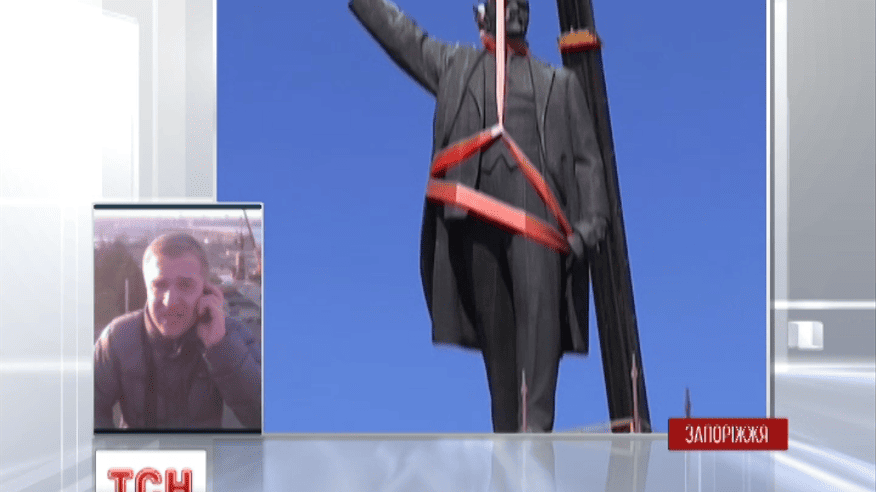 В Запорожье уже восемь часов пытаются демонтировать памятник Ленину