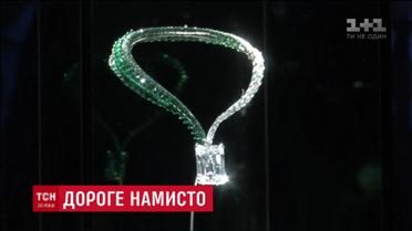 33 с половиной миллиона долларов за 163 карата. В Женеве на аукционе продали уникальное ожерелье с огромным бриллиантом чрезвычайной чистоты, украшенное изумрудами и меньше бриллиантами. Украшение - произведение мастеров швейцарского ювелирного дома. Бриллиант добыли лишь год назад в Анголе.