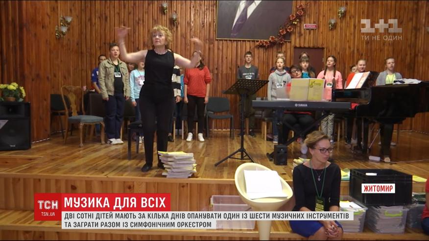 Школьники от 11-ти до 16-ти лет стали участниками необычного творческого лагеря, действующего в одной из музыкальных школ. Всего лишь за несколько дней каждый здесь должен овладеть какой-то инструмент. Большинство детей не имеют музыкального образования и даже ни разу не держали в руках музыкальные инструменты. Все, чему учатся участники музыкального лагеря, они продемонстрируют на концерте в конце недели. Не только играть, но и петь на большой сцене Житомирского драмтеатра вместе с настоящим симфоническим оркестром.