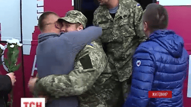 Полсотни бойцов вернулись из зоны АТО домой в отпуск. Бойцы 2-го батальона 95-й аэромобильной бригады несли службу в горячих точках на Востоке: Донецком аэропорту и Дебальцево.