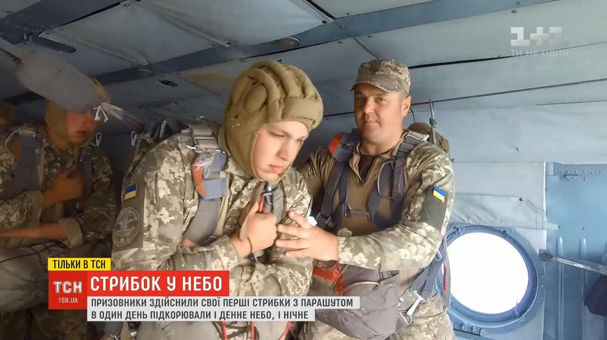В Житомире призывники совершили свои первые прыжки с парашютом