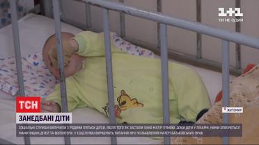 В Житомире социальные службы застали многодетную мать пьяной и отобрали у нее пятерых детей. Самому младшему только 3 месяца, старшему ребенку - 8 лет. Малыши сейчас в больнице. Медики говорят, дети были голодные и неухоженные. За несколько дней ни мать, ни отец к ним так и не наведались. Малышам начали помогать другие мамы, находящиеся в больнице со своими детьми. Социальные службы говорят, семья стоит на учете как неблагополучная. Мать привлекут к административной ответственности за недосмотр за детьми и собираются лишить ее родительских прав. Женщина просит оставить детей с ней.