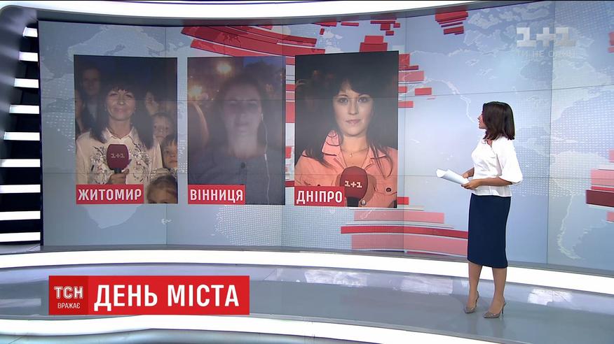 Житомир отмечает 1133-й годовщину. Главная изюминка этого года - парад военных духовых оркестров. Соседняя Винница отмечает 654 года. В город приехал президент Украины, премьер-министр и председатель ВР. Днепряне празднуют 241-ый день рождения. Семь тысяч горожан приняли участие в карнавальном шествии.