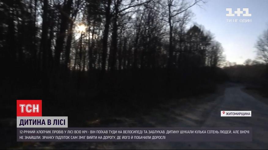 В Житомирской области 12-летний мальчик всю ночь провел в лесу. Мальчик пошел к отцу, который заготовлял там дрова, не нашел дорогу и заблудился. Его разыскивали 400 человек. Утром подросток сам вышел на дорогу.
