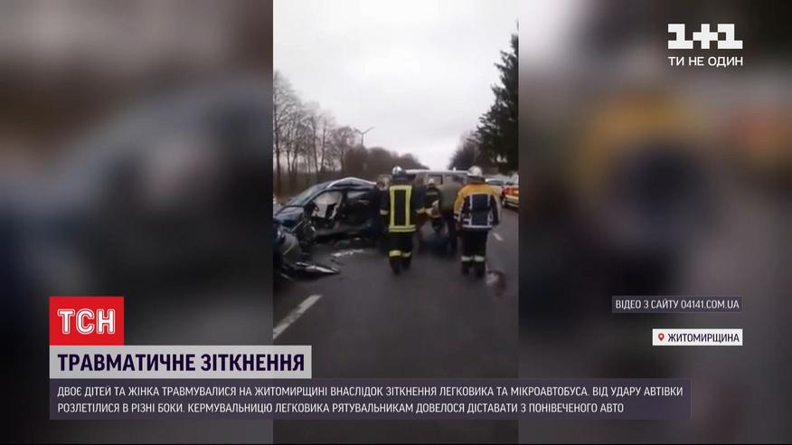 В Житомирской области столкнулись легковушка и микроавтобус - женщина и двое детей пострадали