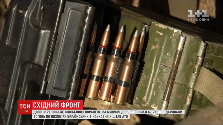Двое украинских военных получили ранения на восточном фронте. Боевики из полусотни раз обстреляли позиции украинских военных. Чаще всего били по Авдеевский промзоне. С артиллерии, града, гранатометов и минометов непрерывно били в течение семи часов. Под огнем также окраины Мариуполя, поселка Крымское и Новоалександровка, что на Луганщине.