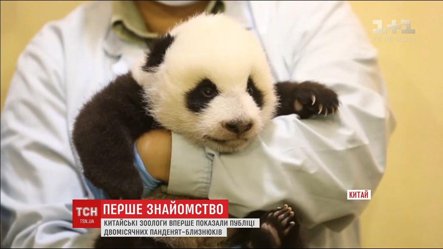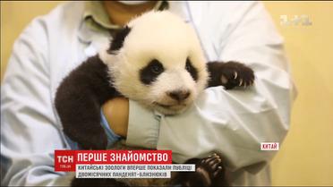 В зооцентре на юге Китая впервые познакомили с публикой маленьких пандочек-близнецов