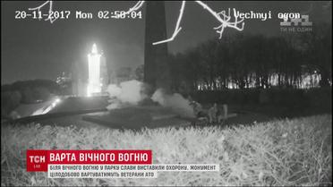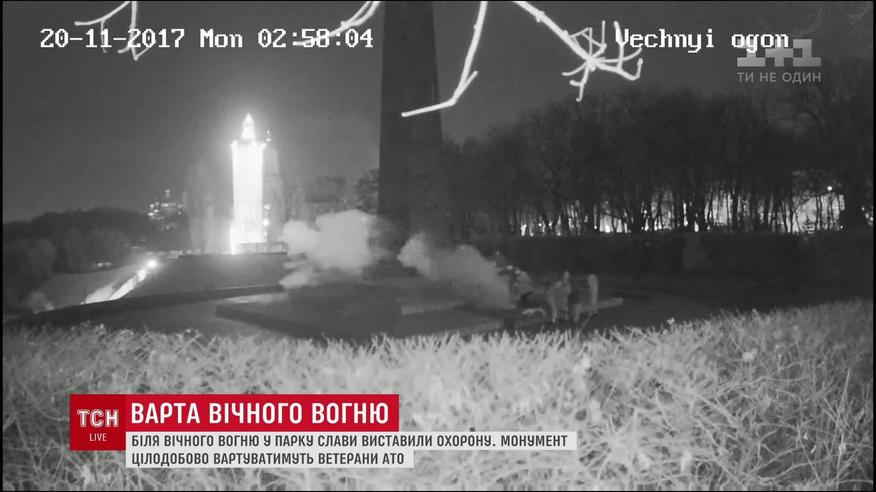 Все они из Всеукраинского союза ветеранов АТО. Говорят, сами вызвались бесплатно охранять обелиск, чтобы туда снова не наведались вандалы. Только за этот месяц неизвестные дважды заливали вечный огонь бетоном. Два дня назад камера даже зафиксировала злоумышленников. Однако до сих пор вандалов не поймали.