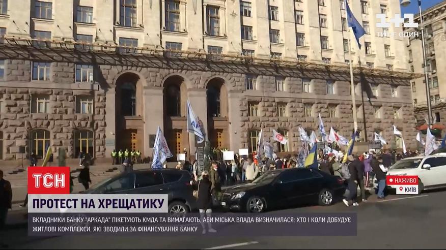 Вкладчики банка "Аркада" пикетируют Киевскую городскую администрацию и требуют, чтобы в мэрии таки определились, кто и когда же достроит жилые комплексы, которые финансировали через "Аркада".