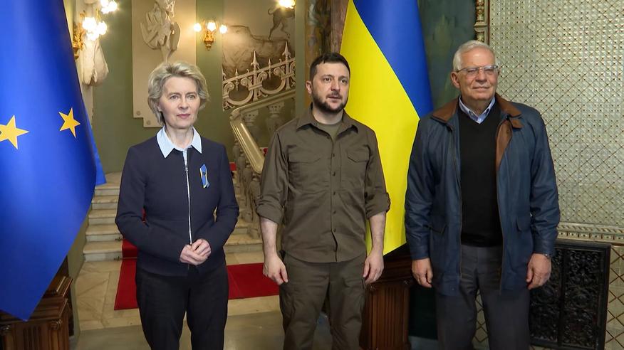 Президент Украины Владимир Зеленский начал встречу с Президентом Европейской комиссии Урсулой фон дер Ляен и Высоким представителем Европейского Союза по иностранным делам и политике безопасности Жозепом Боррелем, прибывшим с визитом в нашу страну.