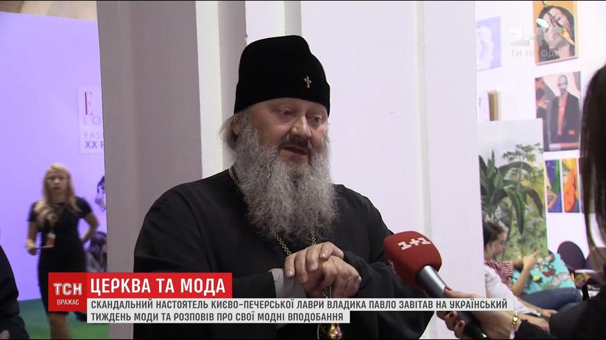 Настоятель Киево-Печерской лавры вместе со своими помощниками пришел на Украинскую неделю моды - посмотреть на коллекцию дизайнера Елены Голец. Оказывается, она шьет для скандального владыки весь его мирскую одежду, и даже покупает ему обувь.
