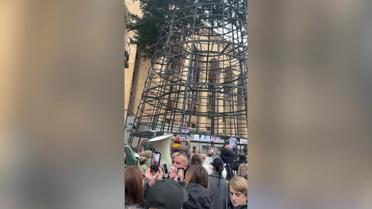 В Тбилиси власти установили новогоднюю елку рядом со зданием парламента, чтобы помешать митингующим собираться на площади. Однако они не растерялись и во время акции против насилия над журналистами подошли к елке и начали клеить на нее фото избитых протестующих и журналистов. Силовики, скрывающие лицо за масками, окружили недособранную новогоднюю елку и не подпускают к ней посторонних.