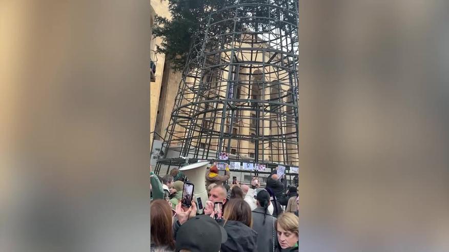 Власти Грузии пытаются помешать митингам возле парламента установлением новогодней елки