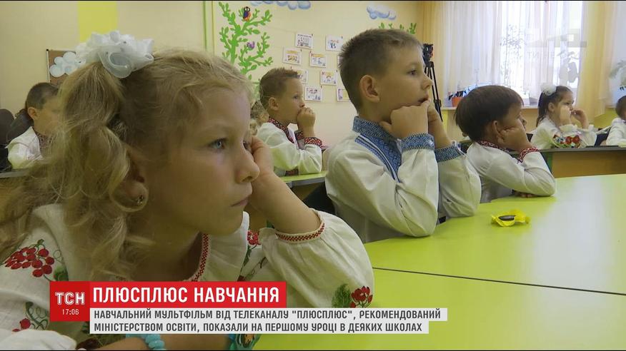 Так сегодня начался первый учебный день в нескольких школах Украины. В расписании - только игры, раздача пряников и мультфильм. Мультфильмы учебные - о мире, что нас окружает, и то, как он устроен, созданные каналом "Плюсплюс".