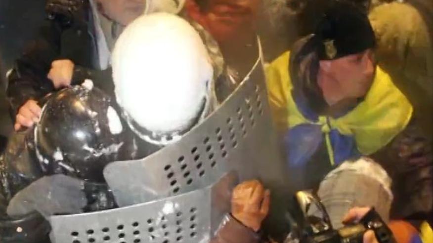 Активисты Евромайдана были оттеснены вниз к Европейской площади. Видео стало доступно благодаря Гражданскому телевиденью.