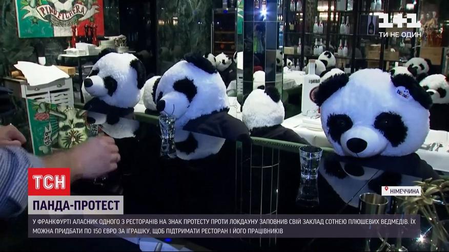 Во Франкфурте владелец ресторана в знак протеста против локдауна заполнил свое заведение сотней плюшевых панд