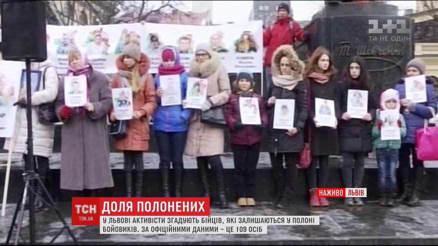 "Назовем поименно всех, кто в неволе". Социальная акция с таким названием проходит во Львове. На площади у памятника Шевченко собрались небезразличные люди, чтобы вспомнить и поддержать украинских бойцов, которые остаются в плену боевиков на Востоке страны.