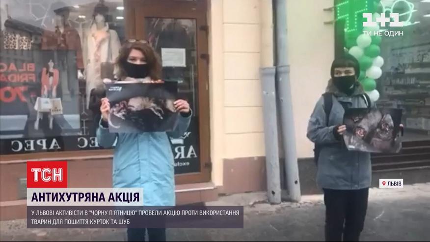 Антимеховые протесты во Львове. Активисты в "черную пятницу" просили людей не вестись на скидки на меховые изделия и вообще отказаться от них. Акцию провели в центре города возле магазина, где продают шубы и куртки с натуральным мехом. Активисты принесли с собой плакаты с изображениями обессиленных животных. Таким образом хотят привлечь внимание к проблеме жестокой индустрии. Людям советуют заменить одежду из меха на вещи из экологичных материалов и таких, которые не вредят животным.