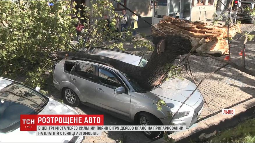 Во Львове дерево разбило автомобиль, припаркованный в центре города