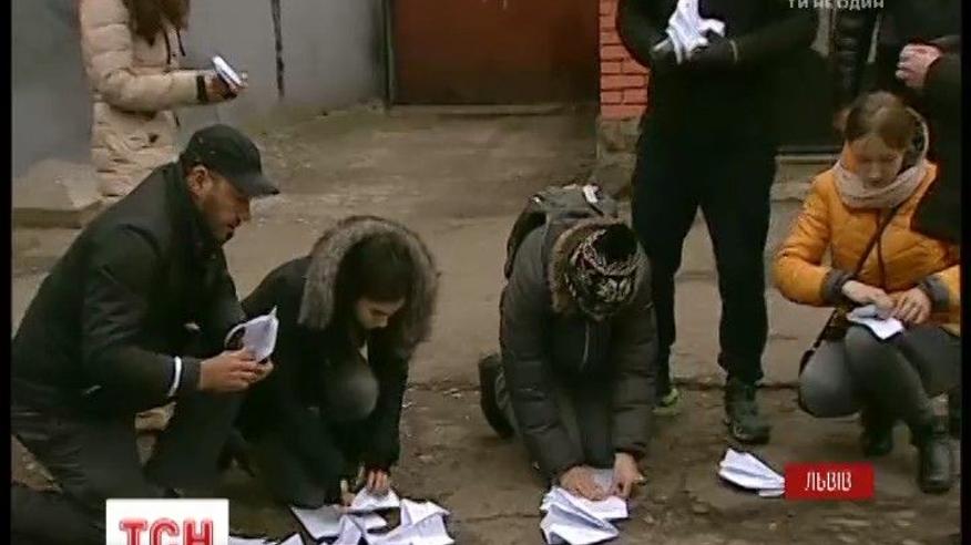 Возле российского консульства переселенцы с полуострова организовали художественную акцию. Они поставили песочницу, форма которой напоминает очертания Крыма, а внутри - игрушечные солдатики. Также организаторы сделали бумажные самолетики из листов, на которых распечатаны резолюции ООН и Совета Европы, касающиеся Крыма. Российский дипломат из консульства несколько лет назад покинул Львов, поэтому акция никому не приносит неудобств.