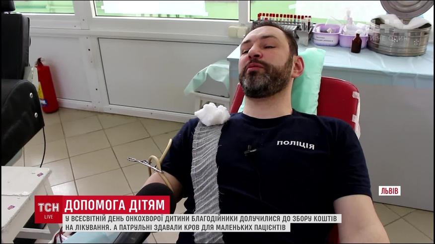 Во Львове патрульные полицейские сдавали кровь для онкобольных детей