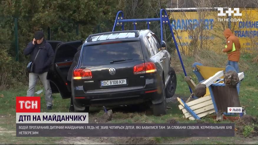 Протаранил детскую площадку, снес горку и повис на качелях. Во Львове пьяный водитель на внедорожнике едва не сбил четырех детей, которые играли на площадке. По предварительной информации, мужчина выехал со стоянки и сразу же совершил аварию. По словам свидетелей, был настолько пьян, что сначала не мог сам выйти из авто, а потом опирался на машину копов, потому что не держался на ногах. Документов водитель не имел, сказал, что внедорожник принадлежит отцу. Впоследствии выяснилось, что он работник Нацполиции. Его уже пообещали уволить.