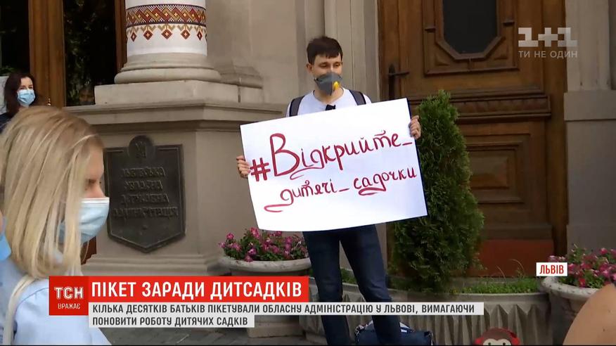 "Откройте детские сады!" Во Львове два десятка родителей под стенами областной администрации требовали возобновить работу дошкольного образования. Говорят, работают и не с кем оставлять детей. На пикет мамы и папы пришли с малышами, у здания расстелили покрывало и положили туда игрушки. Родители возмущаются, что, несмотря на карантин, в области работает уже все кроме детских садов. И уверены - при соблюдении всех санитарных норм, их дети будут в безопасности.