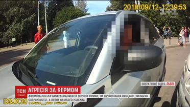 Во Львове водитель заблокировала дорогу скорой и наехала на копа