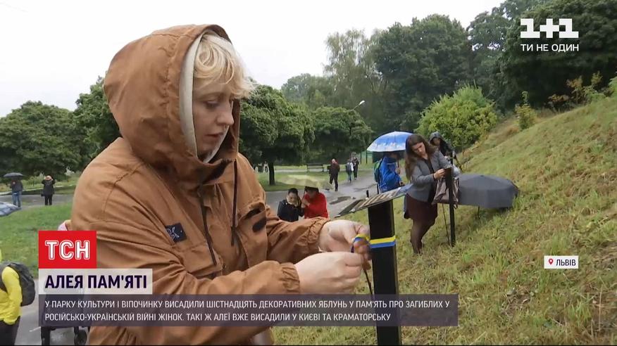 Мама, не плачь, я расцвету весной. Во Львове высадили аллею памяти погибшим женщинам в российско-украинской войне. В парке культуры и отдыха появилось 16 декоративных яблонь. Ведь именно столько женщин отдали свою жизнь на фронте. У каждого деревца именная табличка и сине-желтая лента. Впоследствии здесь появятся еще и QR-коды с короткой историей о женщинах. Среди них - военные медички, пулемётчицы, разведчицы и волонтеры. На открытие аллеи пришли преимущественно ветеранки, которые знали погибших. Они говорят, хотят, чтобы память жила вечно и надеются, что больше новых деревьев здесь не появится. Такие же аллеи уже высадили в Краматорске и Киеве. Планируют сделать это во всех крупных городах чтобы женщины символически побывали в каждом уголке Украины куда при жизни не успели доехать.