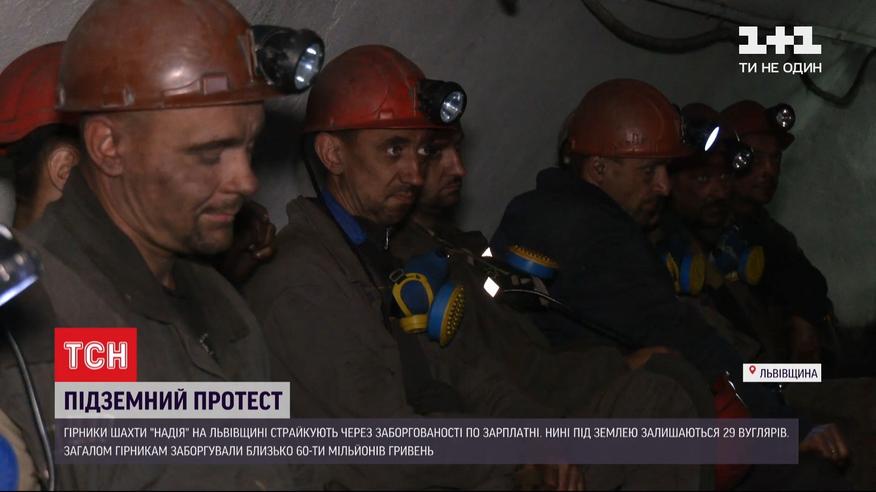 Во Львовской области 29 горняков шахты "Надежда" до сих пор сидят под землей. На поверхность они не выходят уже третьи сутки. Сначала выходить из забоя отказались 4 десятки шахтеров, впоследствии из-за ухудшения самочувствия некоторых из них принудительно медики вывели из рудника. Акцию протеста на глубине в полкилометра угольщики устроили из-за невыплаты зарплаты. Шахтерам задолжали за 5 месяцев, всего около 60 миллионов гривен.